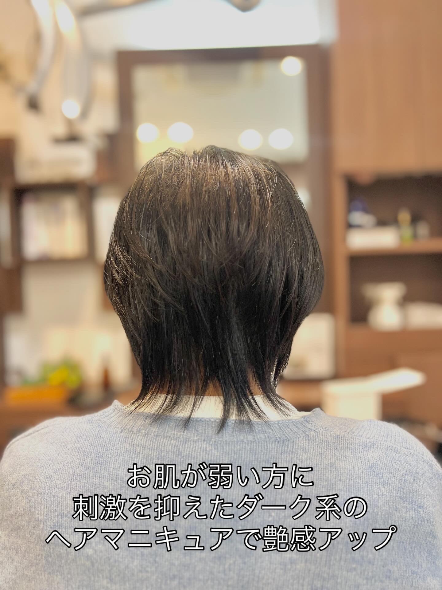 お肌に優しいダーク系ヘアマニキュアで自然な艶をプラス。