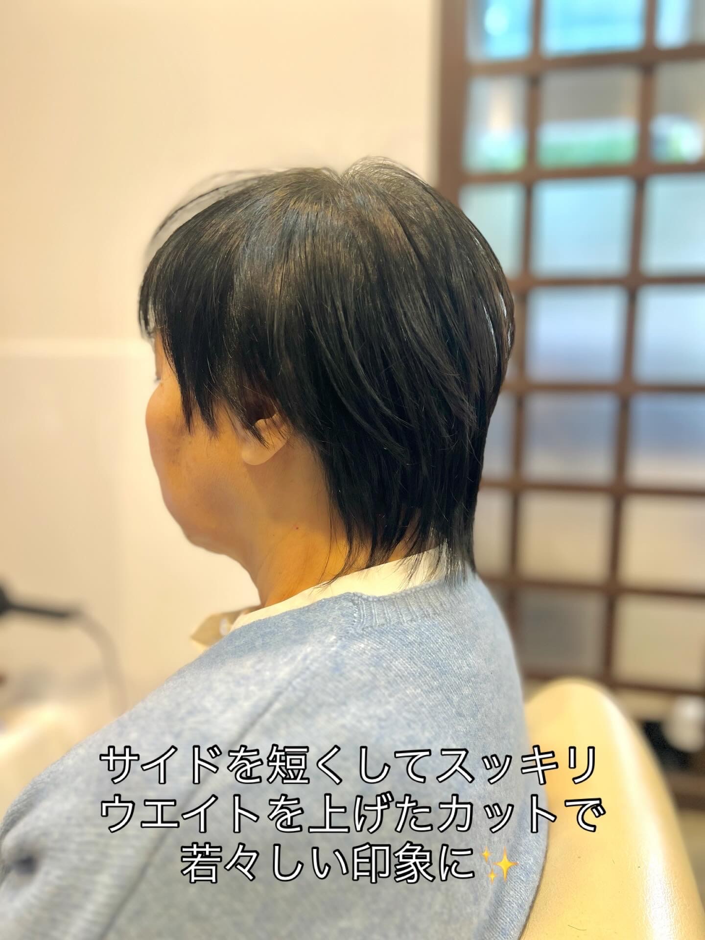 サイド短めのウルフカットで、ウエイトがあがり若々しく、後ろ姿までスッキリ!
